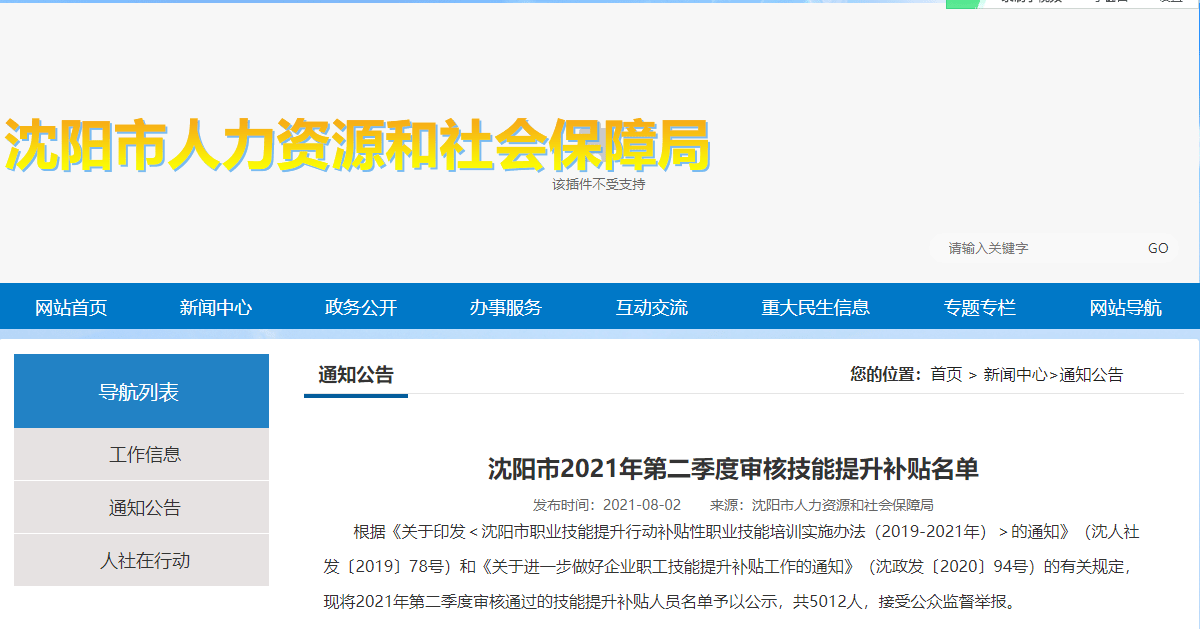 根据《关于印发沈阳市职业技能提升行动补贴性职业技能培训实施办法(2019-2021年)的通知》(沈人社发〔2019〕78号)和《关于进一步做好企业职工技能提升补贴工作的通知》(沈政发〔2020〕94号)的有关规定,现将2021年第二季度审核通过的技能提升补贴人员名单予以公示,